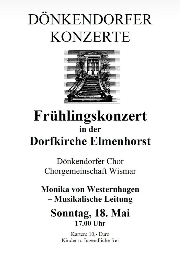 Unter der musikalischen Leitung von Monika von Westernhagen, Kultur Gut Dönkendorf e. V., veranstalten wir ein offenes, gemeinsames Singen von bekannten Frühlingsliedern für jedermann. Wandern oder radeln Sie, gern mit eigenem Picknickkorb, mit Decke oder Stuhl, zum Hohen Schönberg, an der Landstraße 01 zwischen Klütz und Hohen Schönberg gelegen. Ein kleines Kaffee- und Kuchenangebot wird von dem Verein Wegefreunde Klützer Winkel e. V. bereitgestellt.
